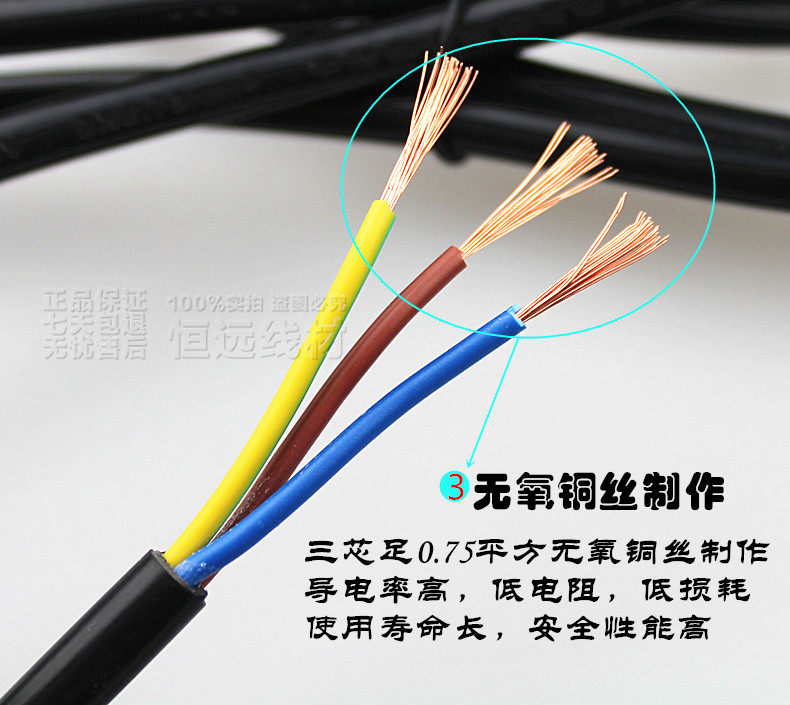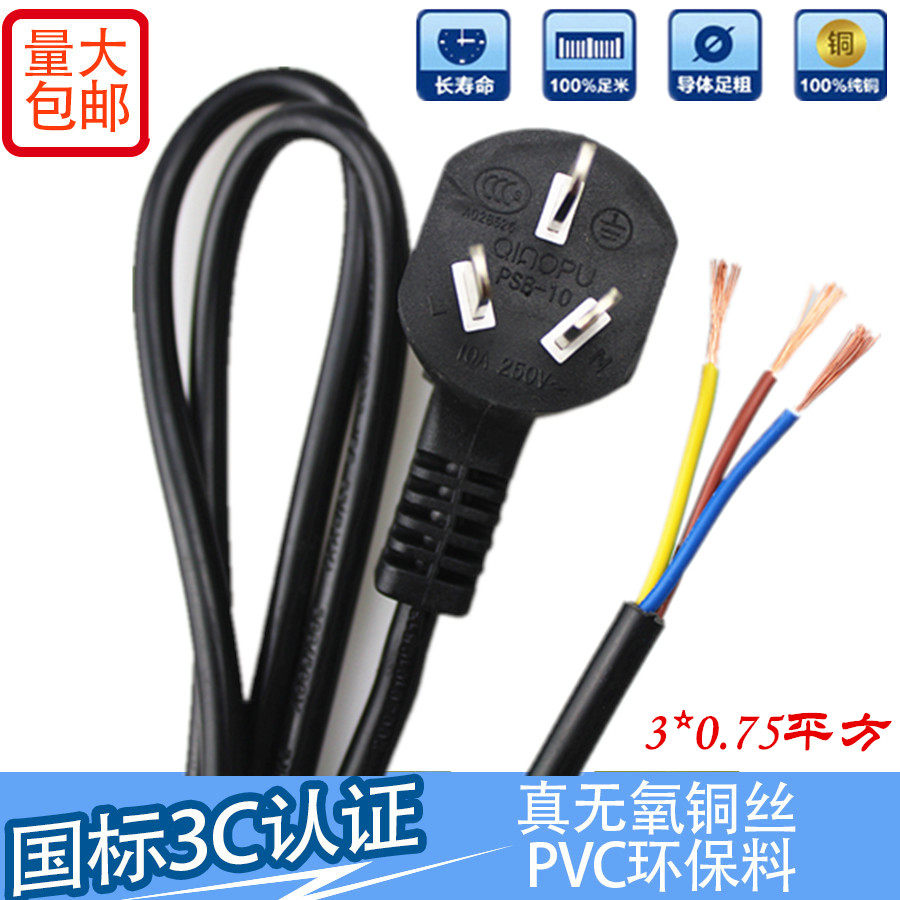 Pure copper national standard three-core power cord with plug 0 75 1 1 5 squared 2 5 m Three-plug power cord Three holes