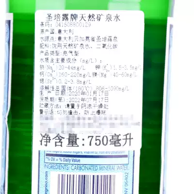 Italy imported St Peilu gas-containing natural mineral water 750mltimes 12 bottles FCL weak alkaline high-end glass
