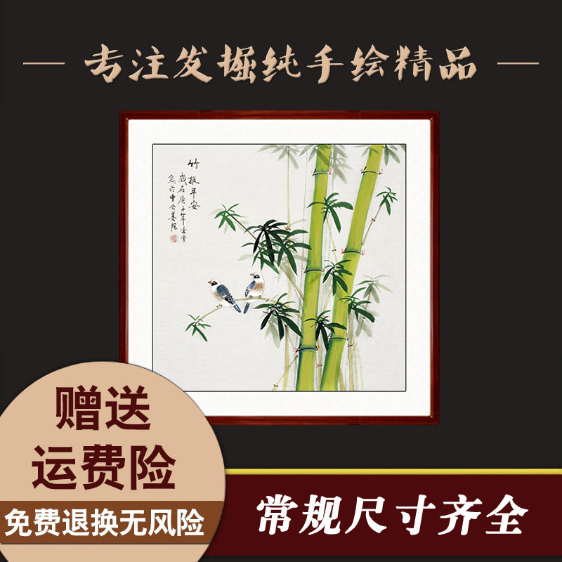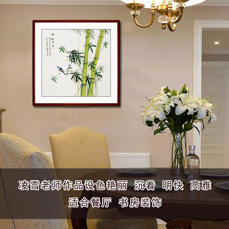 Pure hand-painted bamboo bucket bamboo bucket pieces hanging drawing room basalt library restaurant with frame decoration painting