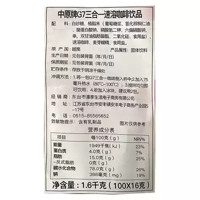 Vietnam imported G7 coffee instant three-in-one 1600g original flavor 100 bags of coffee powder packets