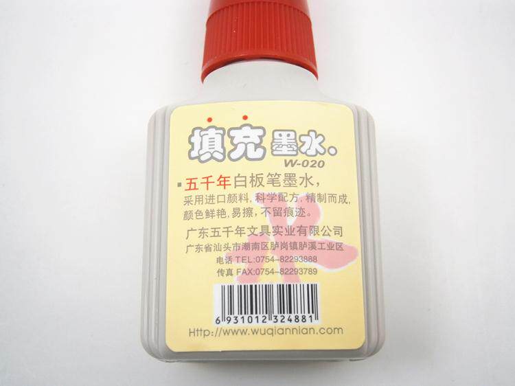 Five millennia white board pen ink supplement liquid erasable pen water black blue red 28ml w-020