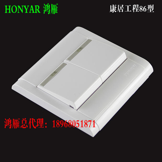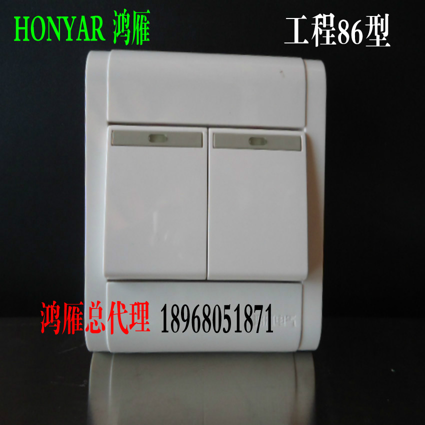 Hangzhou Hongyani Switch Socket Congü Series A86 Type Fluorescent Two Open Double Cut Duplex A86K22Y10BN
