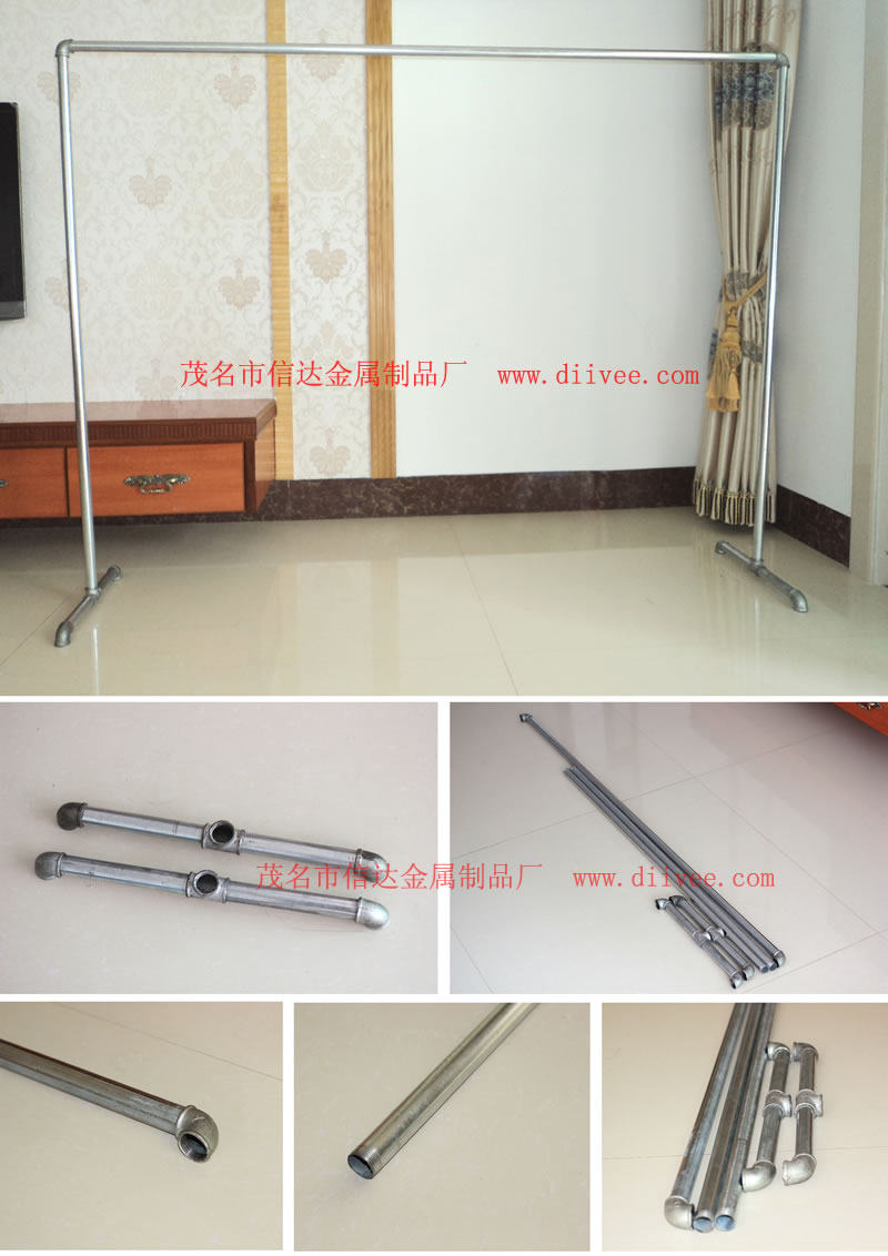 Double-layer clothes hanger, water pipe floor clothes hanger, upper and lower night market stalls, universal galvanized steel pipe clothes hanger