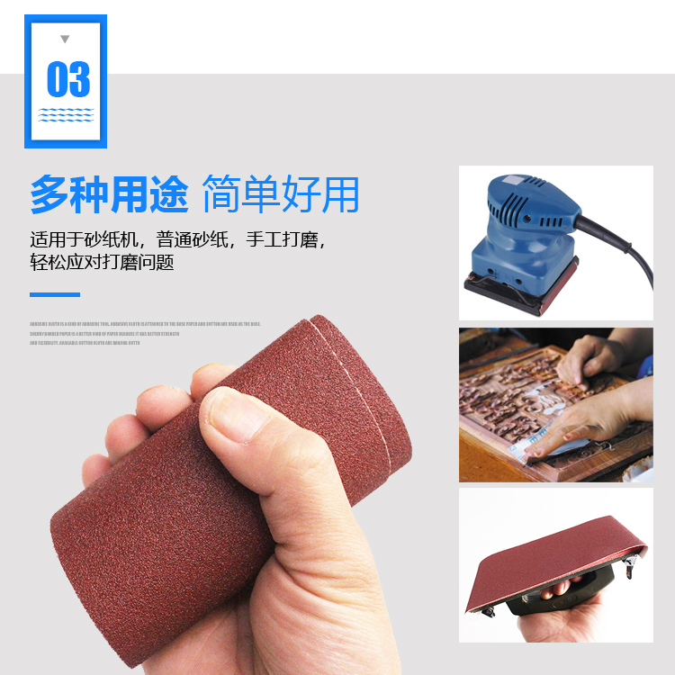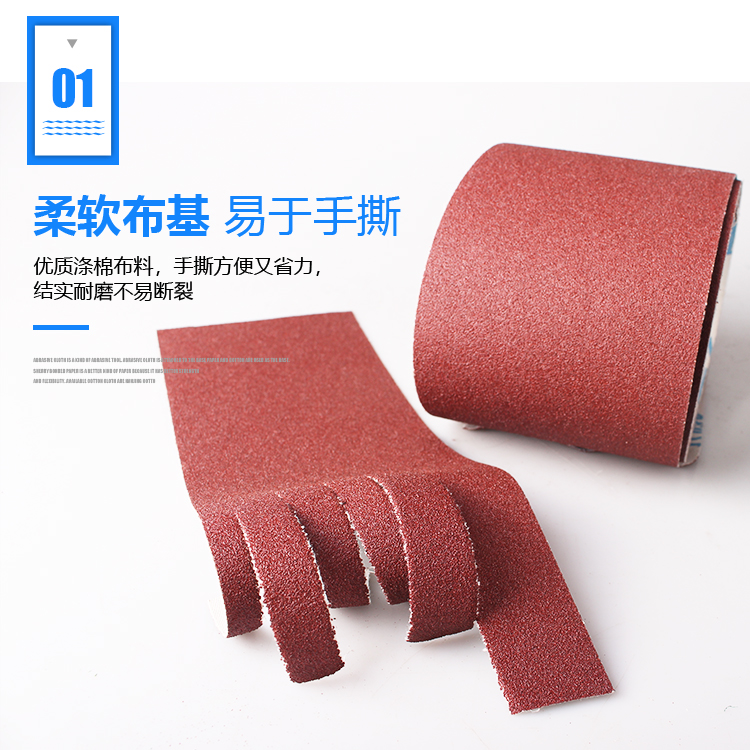 tj113 hand-torn soft sand cloth with roll woodworking sand polishing dry grinding flocking fine sandpaper piece abrasive belt off the sand bag back