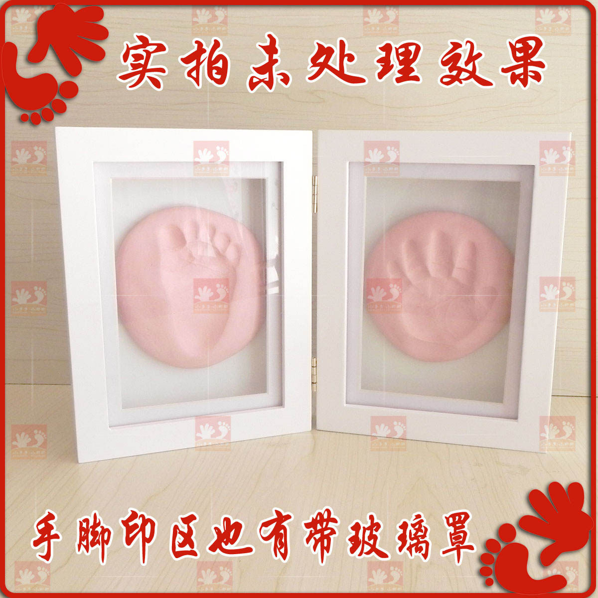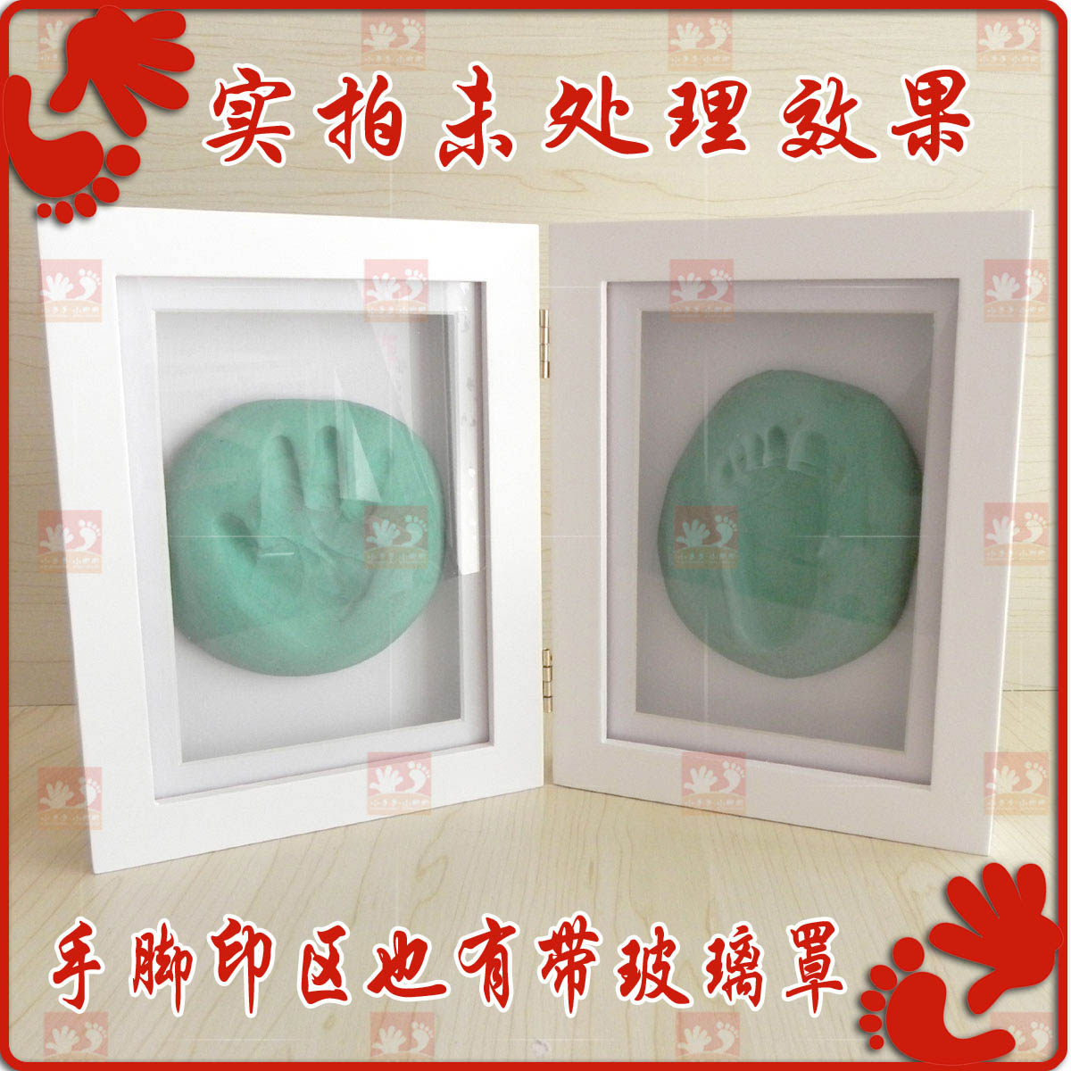 Baby print mud Hand and foot print mud Baby hand and foot print mud with glass cover two-fold solid wood souvenir