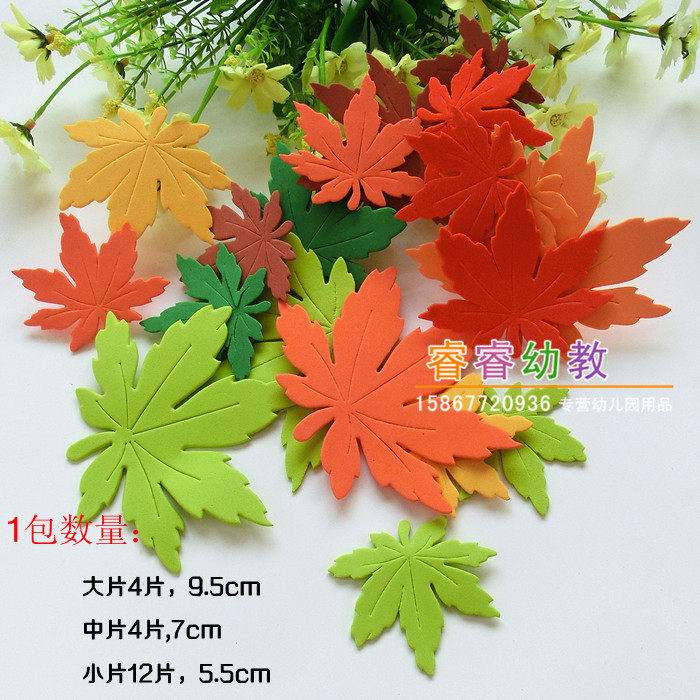 New colorful maple leaf small tree leaf small pineapple leaf Green leaf 12 pieces of trunk One leaf and flower elf leaf pack of 3-color maple leaf