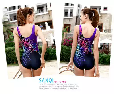 Sanqi swimsuit women's one-piece flat corner swimwear women's thin size, belly middle-aged and elderly hot spring swimwear Conservative