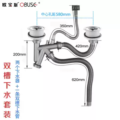Opel kitchen sink water pipe double sink sink 304 stainless steel water drain vegetable wash basin mop pool water