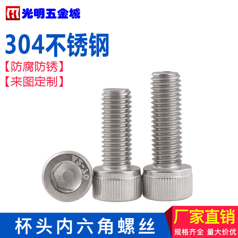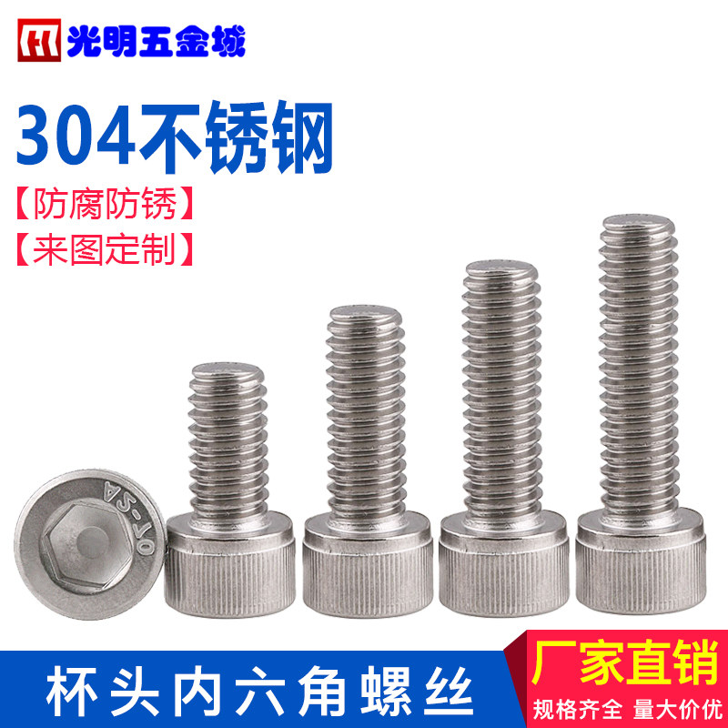 304 stainless steel cup head screw Cylindrical head hexagon screw full tooth M6 series 6*10-100
