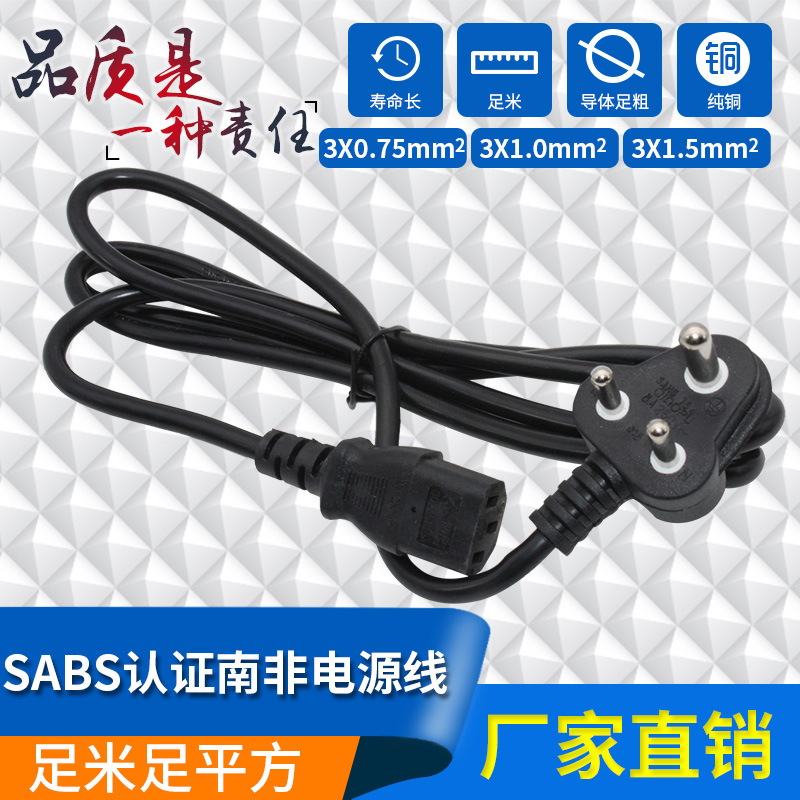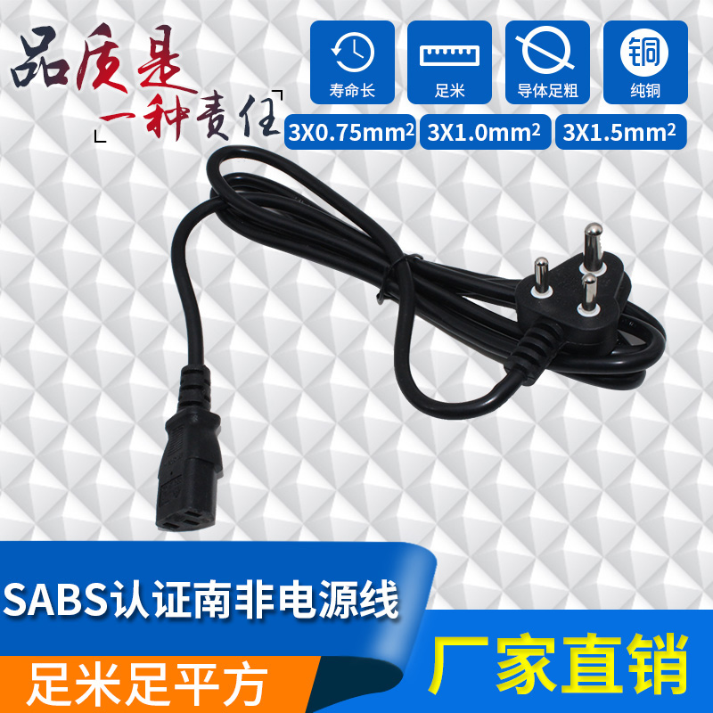 Pure copper small South African power cord India power cord 3 Core 0 75 1 5 squared 1 8 m Three-hole plug connecting line