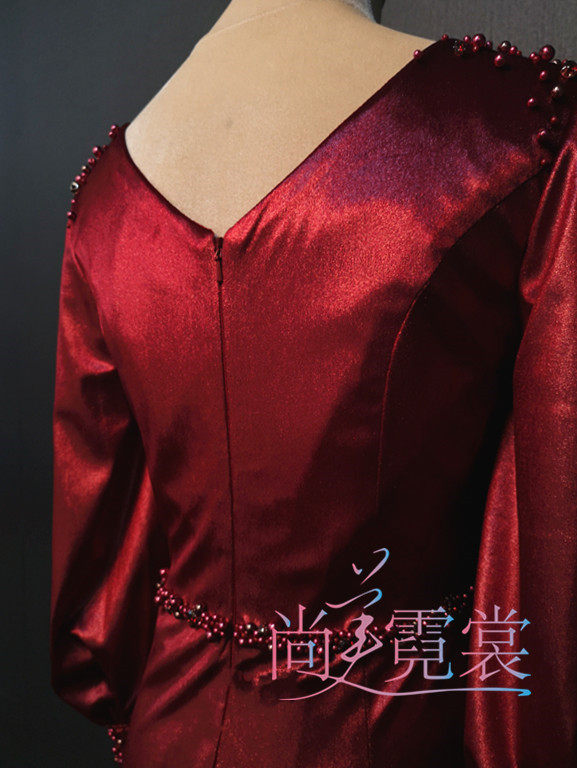 Rental Rental Upscale Long Version Wine Red Gold Velvet Handnail Beads Dinner Dresses Host Gown