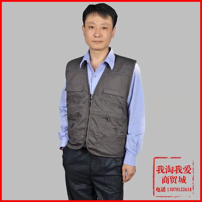 Male and female V collar multi-pocket pure work clothes horse-nail photography wedding fishing horse-clamp volunteer publicity suit Custom LOGO