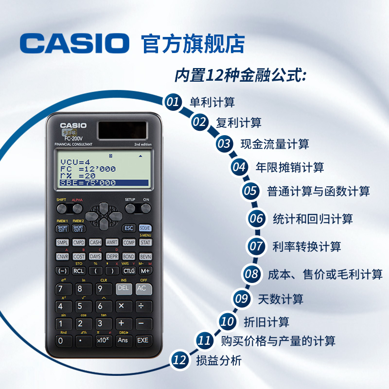 (Flagship store) CASIOFC-200V solar financial financial management professional examination calculator financial accounting office computer CMA FRM Financial accounting CFA one-level examination