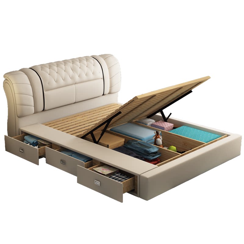 Genuine Leather Bed Genuine Leather Bed 2 Cabinets Genuine Leather Bed 2 Cabinet Environmental Protection Coconut Palm Mat Genuine Leather Bed 2 Cabinet Environmental Protection Latex Mattresses Genuine Leather Bed 2 Cabinets High Breathable Latex Cushion Genuine Leather Bed 2 Cabinets 5D Independent Milk