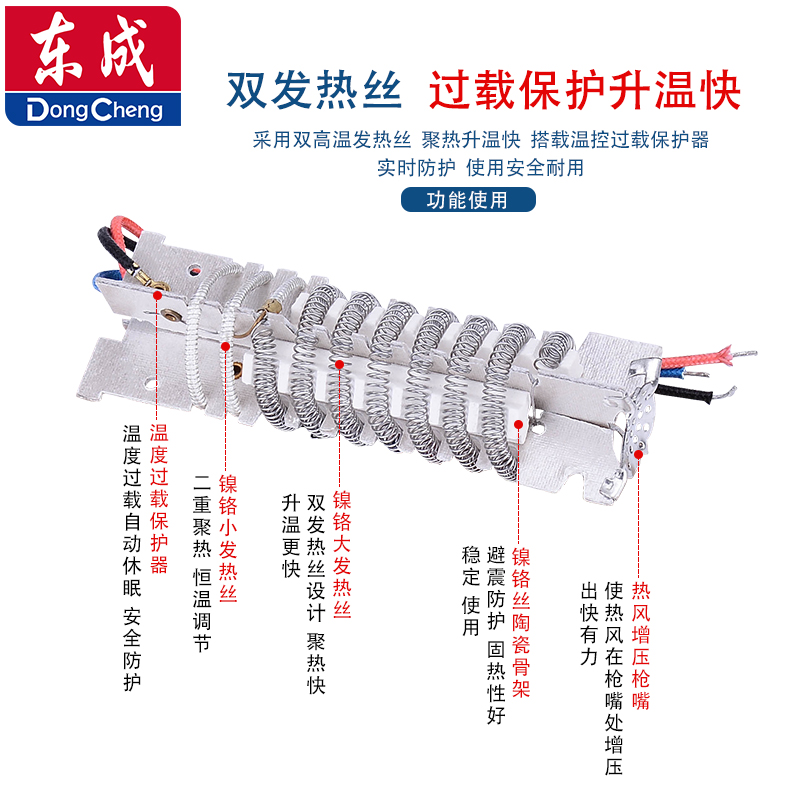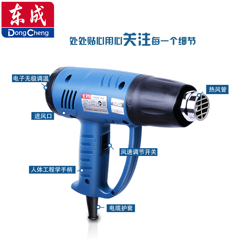 Dongcheng hot air gun Industrial grade high-power plastic welding gun adjustable temperature electric baking gun Car film heat shrinkable gun baking grab