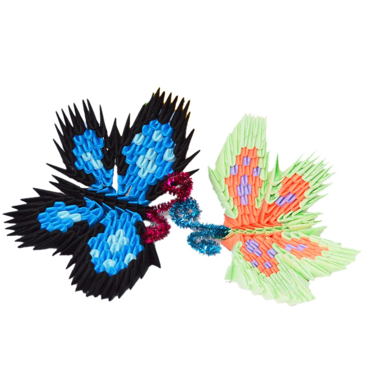 4 random multi-color butterflies in 4CM material pack 2 rainbow fishes 2 butterflies material packs a pair of semi-finished butterflies a pair of semi-finished rainbow fish a pair of semi-finished products folded a triangle butterfly a finished product at random
