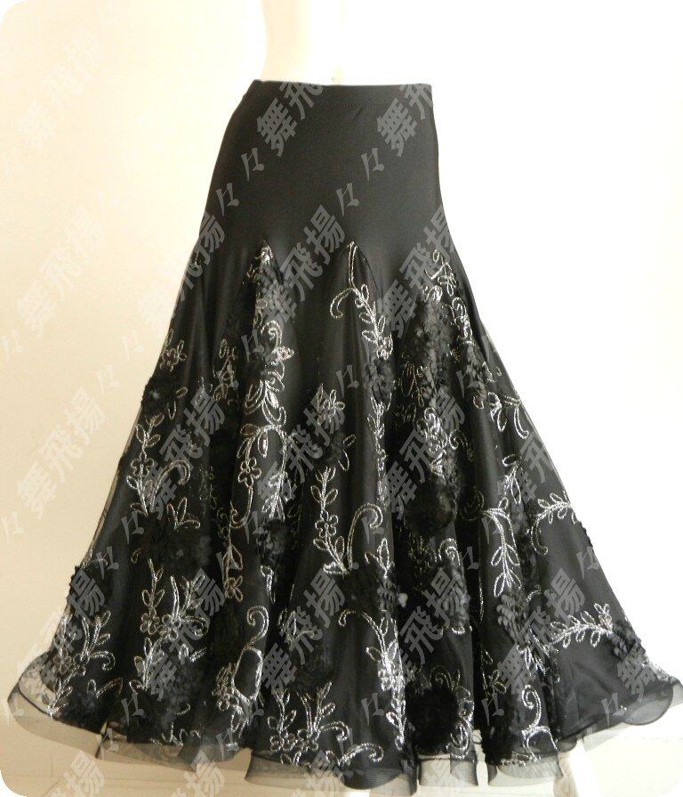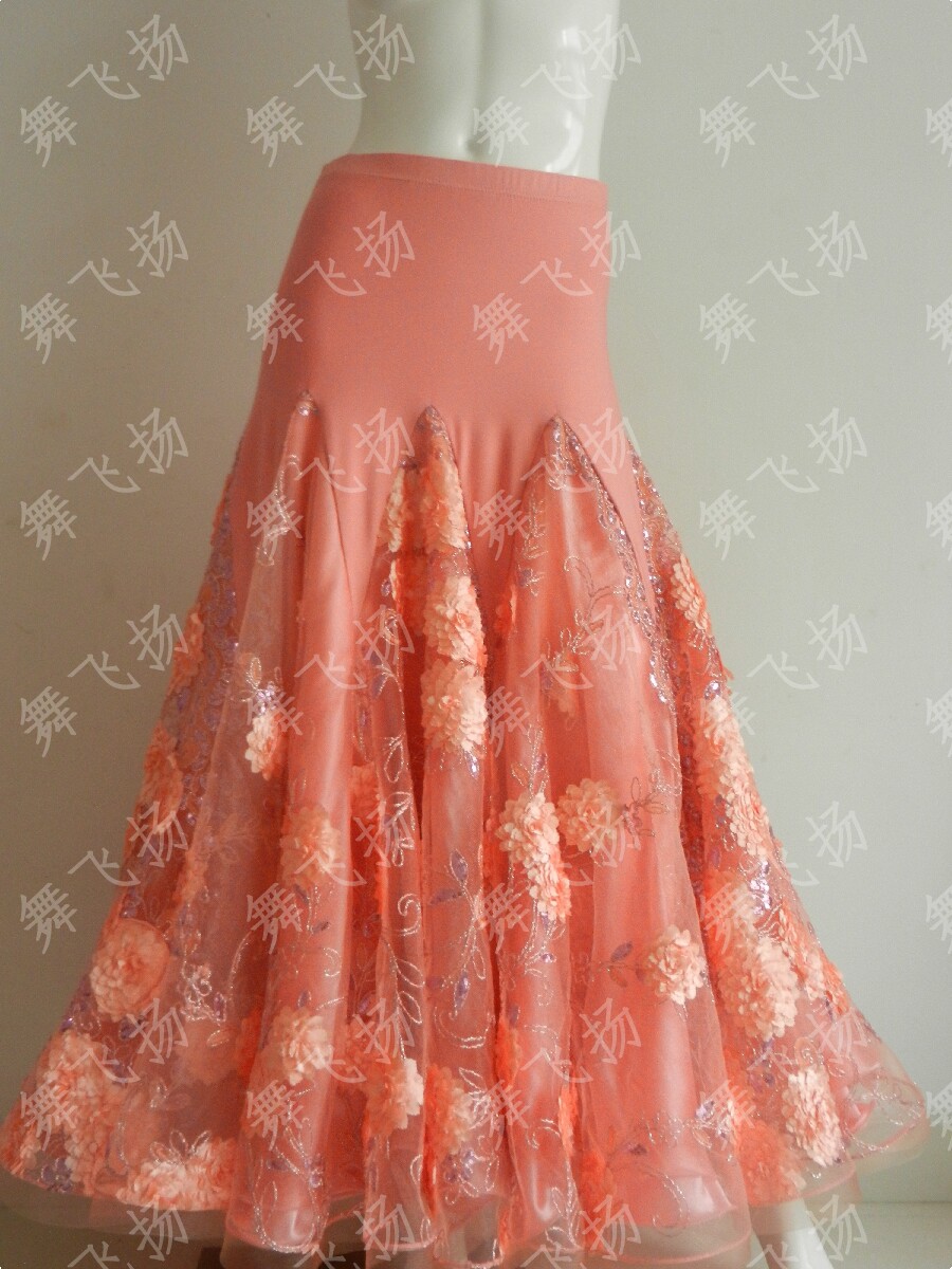 Dance Fly on social dance Fancy Double Flowers Bright Sheet National Mark Dance Large Pendulum Practice Skirt Morden Dance Half Body Skirt KD079
