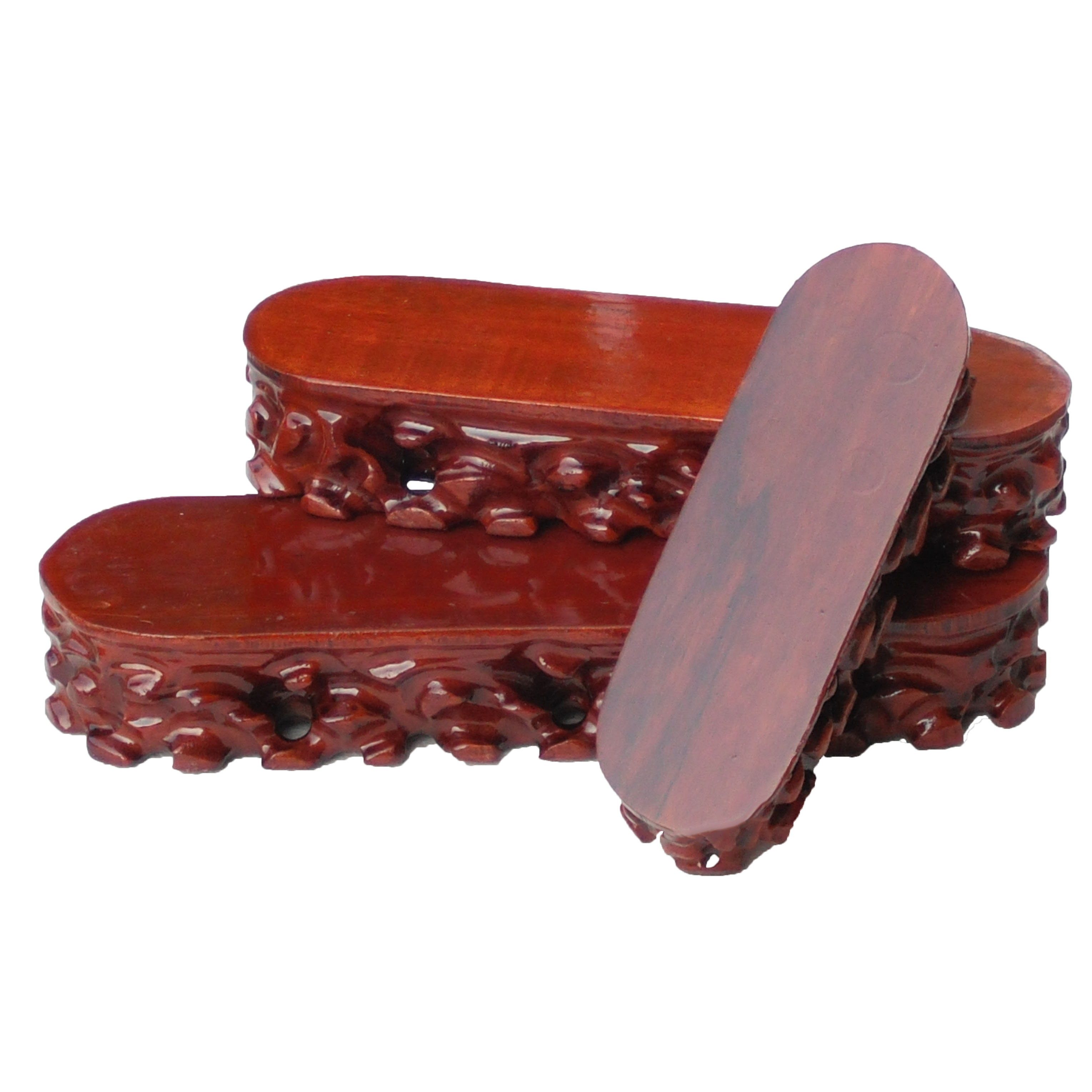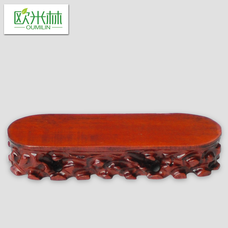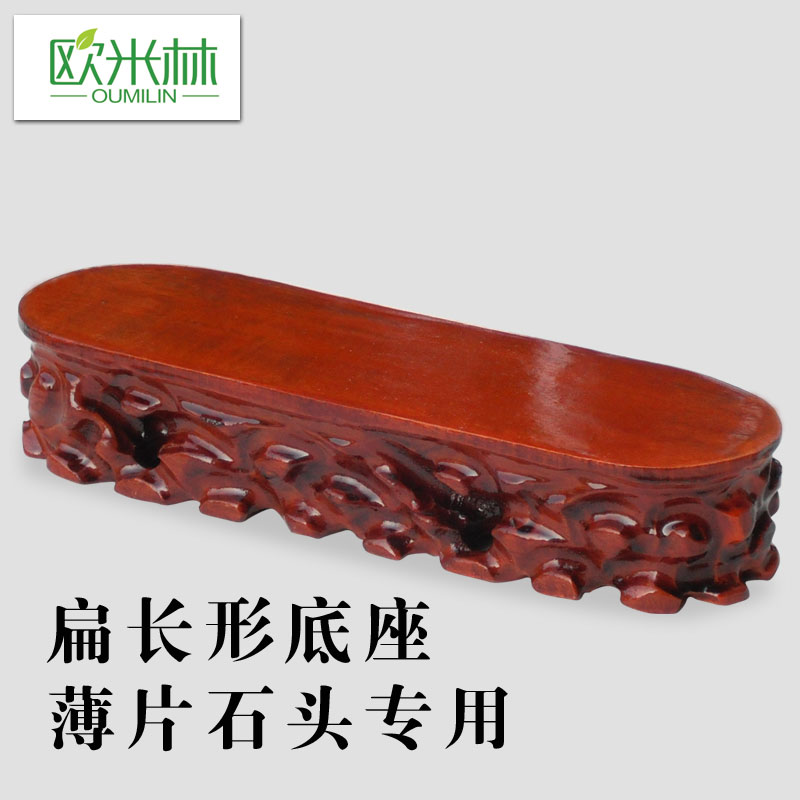 A053 Long strip shaped wood can dig root carved stone base flat wooden button