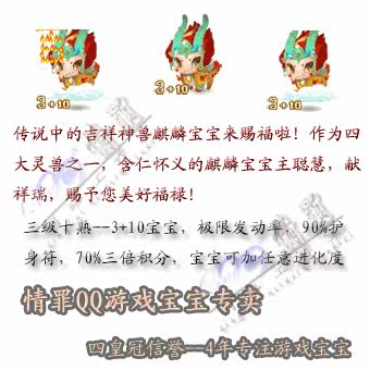QQ gaming baby 3 10 Kirin 3 Class 10 Cooked Divine Beast 30 days RMB20 RMB110 900 900 days RMB160