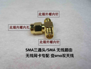 SMA three-way head 10%-2 adapter wireless router retrofit dual-antenna enhanced wifi signal