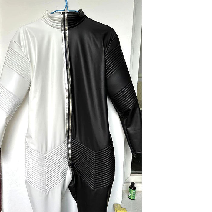 Tailor-made in 18 days. SF clothes, headgear, gloves, scarf, white matt PU, black matt rubberized black and white, please hang up and store to avoid dyeing.