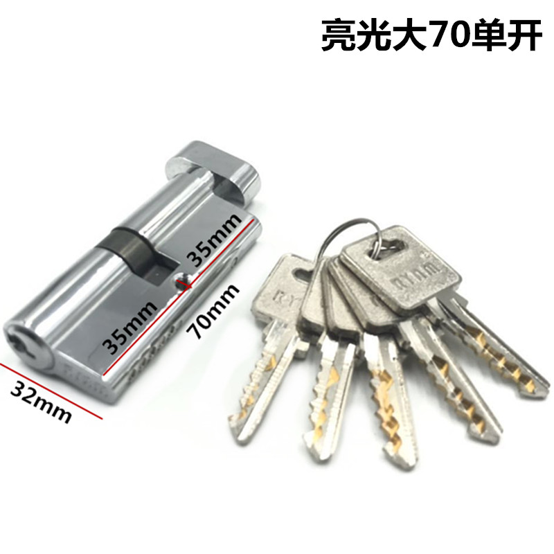 Pure copper bright chrome bright light big gourd 70MM single-sided double-sided high and low teeth anti-prying lock core anti-theft door door lock core