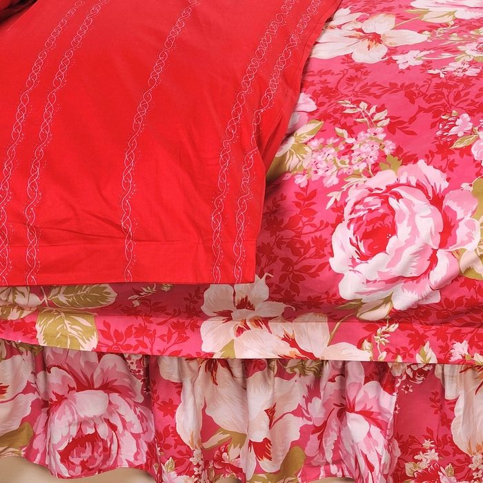 Red Fuji Bed Pint FA-8 All-cotton Twill Printed Bed Skirt Wedding four sets Versailles rose cozy-Taobao