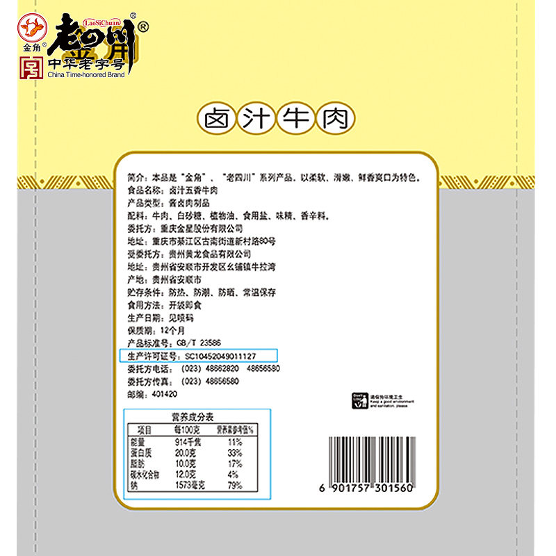 (Old Sichuan Brine Beef 108g) Golden Horn Spiced Spicy Five Fragrant Chongqing Teaters Spicy Snacks Snack