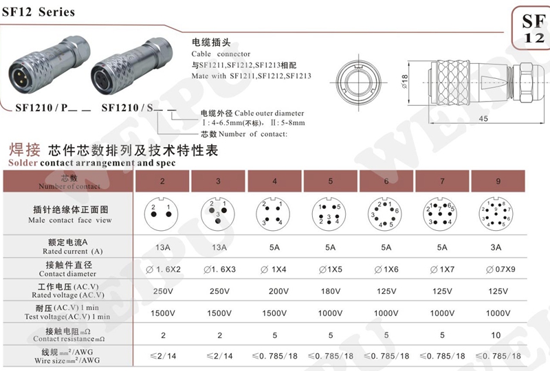 weipu Weipu Air Plug SF12-2 Core 3 Core 4 Core 5 Core 6 Core 7 Core 9 Core Method Lan waterproof IP67