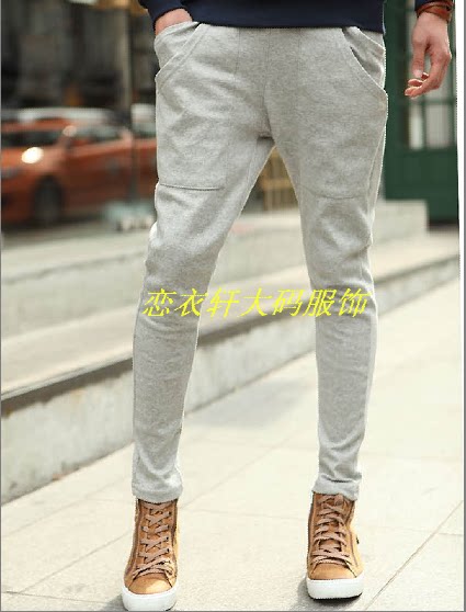 Autumn new men's pure cotton plus fertilizer XL cross pants Harem pants tapered pants pencil sports trousers pencil pants