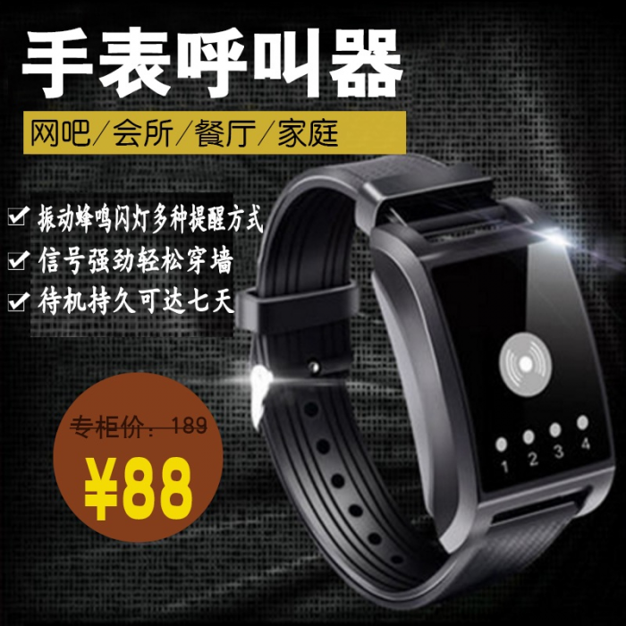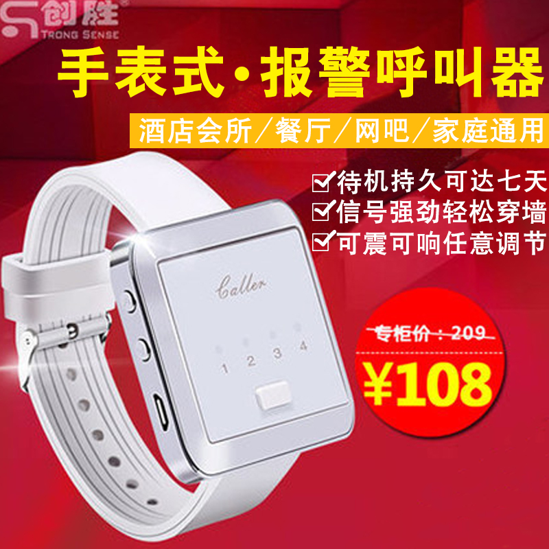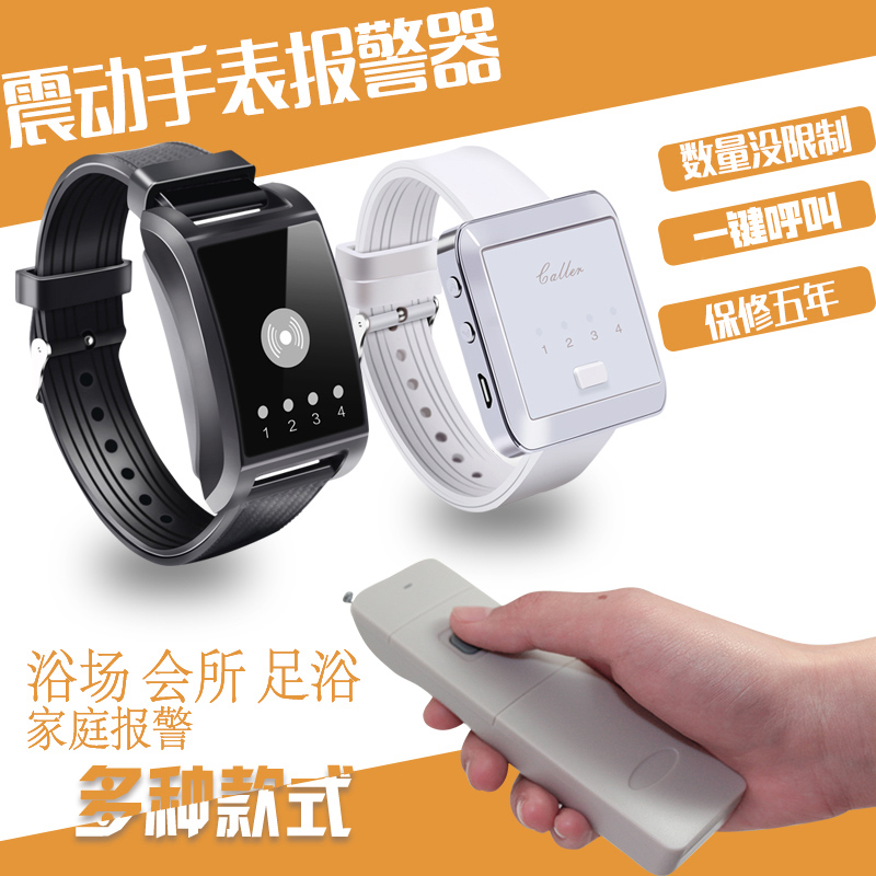 Wireless remote control Bath watch alarm Foot bath wireless watch bracelet Emergency call sound and light vibration reminder Club portable watch call rescue one-button reminder vibrator