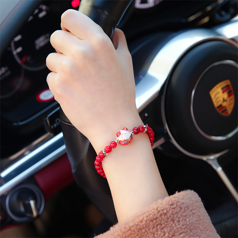 Ji Cat Hall ceramic couple lucky cat bracelet Female cute Japanese sweet hand ornaments Student best friend birthday gift