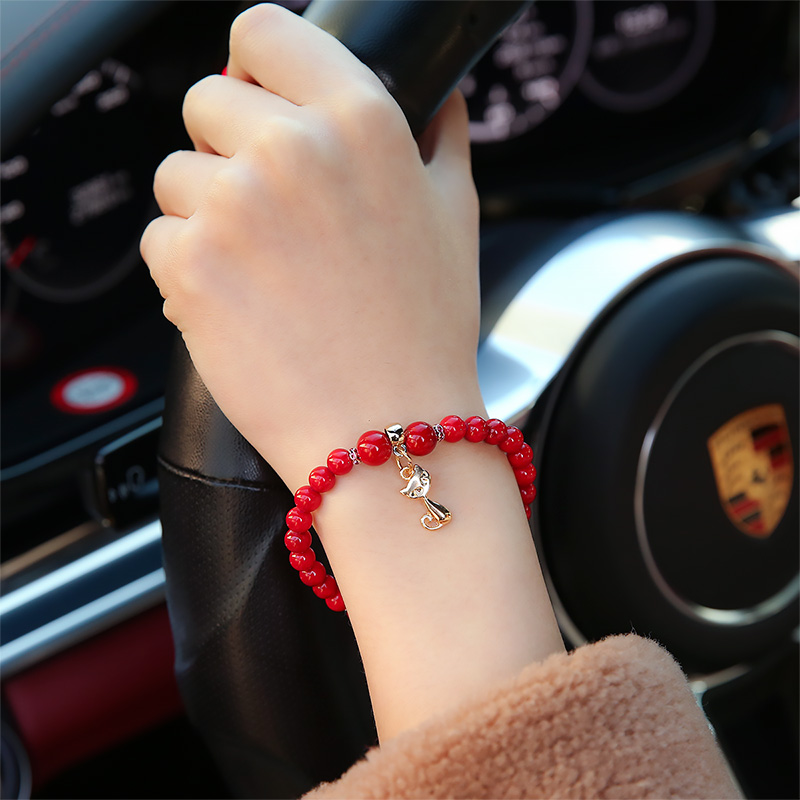 Ceramic little cat bracelet (Ruby red) Ceramic little cat bracelet (charm black) Ceramic little cat bracelet (Cherry pink) Good luck beads Kitten bracelet (Agate Red) Kitten bracelet(temperament red
