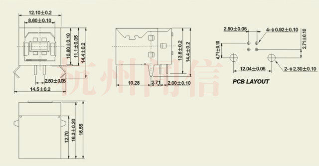 USB Block USB Foundry USB Block-B Type 90 Degree DIP Straight In-line Physical Store