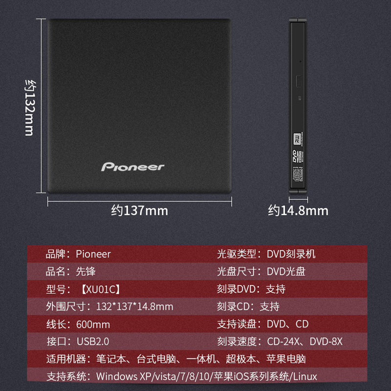 Pioneer DVR-XU01C External CD-ROM drive burner Notebook desktop universal USB mobile external CD-ROM drive box