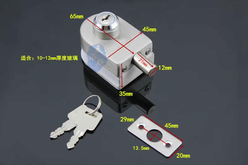 Glass door lock, single door U lock, stainless steel bolt lock, framed glass door lock, ground bolt lock, no drilling