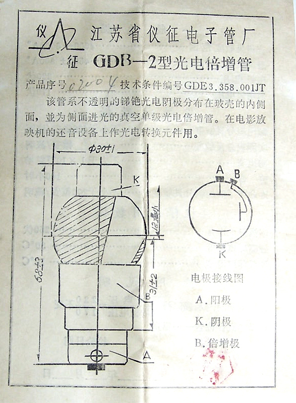 Photomultiplier GDB-2 (the original of the photoelectric conversion of the sound equipment for the sound equipment of the film projector)
