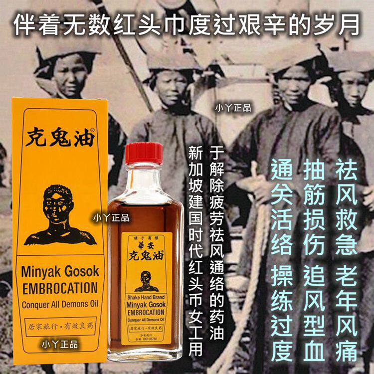 SINGAPORE NIGGER OIL HUAAN SHAKE SHAKE TRADEMARK GHOST OIL OX CART WATER FALL AND SPRAIN MEDICINE OIL 50ML