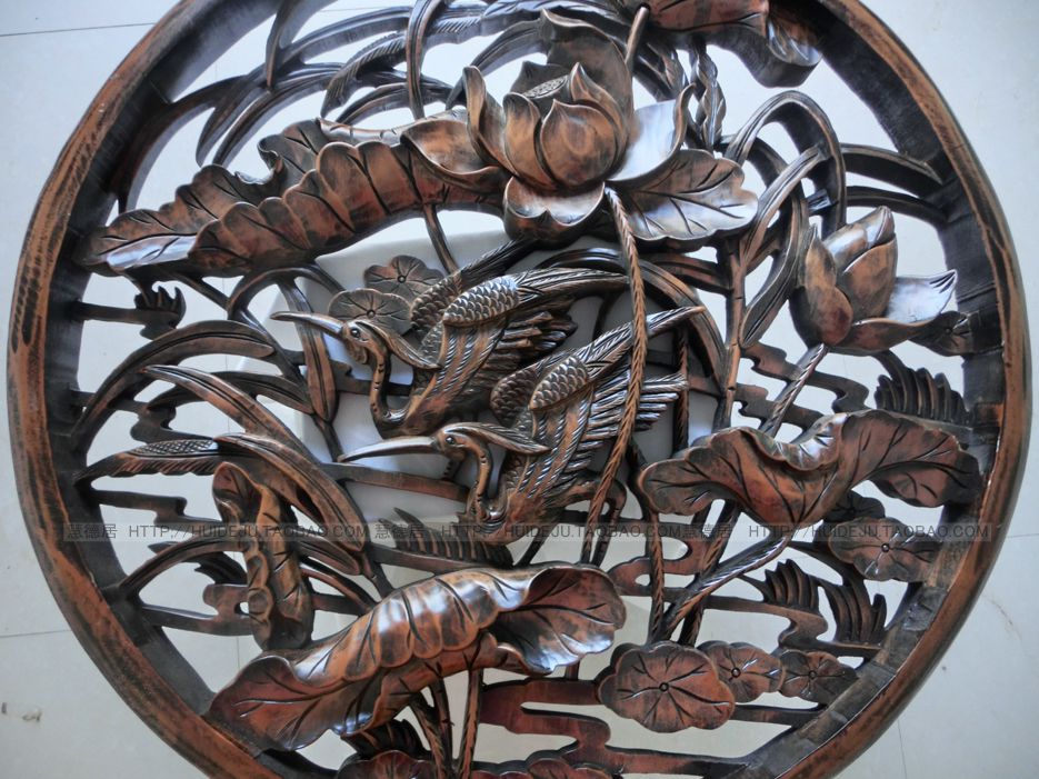 East Yang Wood Carved Handicraft Pendant Hanging wall-hanging home Residence Decoration Round 70cm Lotus Fairy Crane-Taobao