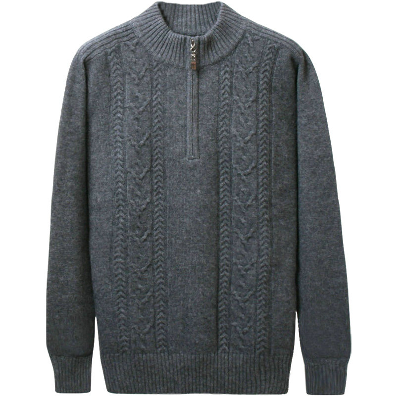 Autumn Winter New Men Thickening Pure Cashmere Sweatshirt Grey Green Pure Color Twist Lace half high collar Jacket Head Warm Sweater