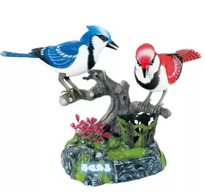 Double 11 West knight simulation children's toy bird can bark, move and swing electric voice-activated induction double bird