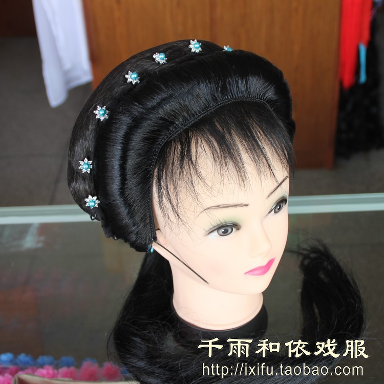 Flower denier drama headgear Miss Wig Sleeve Lady Soft Headgear Ancient Dress Counter String Photo Gallery Writing Real Opera Headgear 6