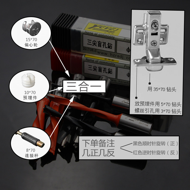 Subterus Triple Pointed Blind Hole Drill Woodwork Numerical Control Row Drilling Bit Three-in-one To Take The Total Length 70 Lengthened 57