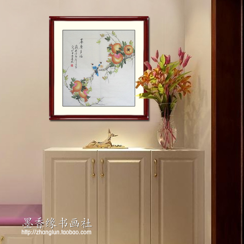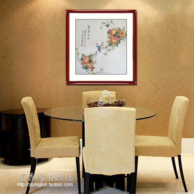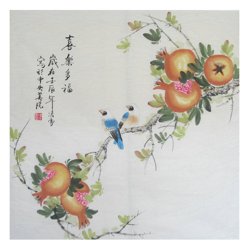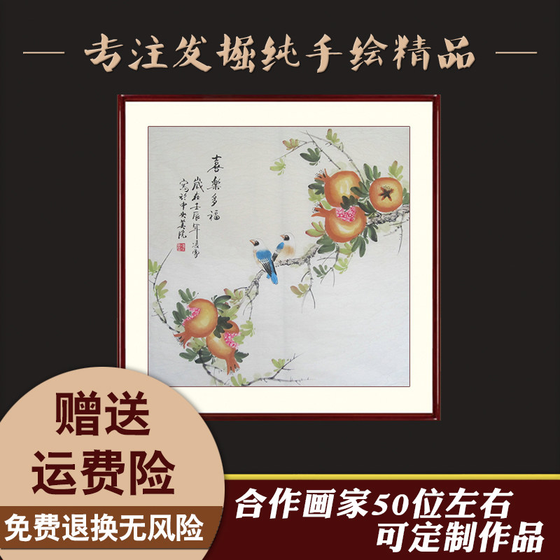 Pure hand painted with flower and bird painting dining room State painting 4-ruler hopper square pomegranate painting Chinese calligraphy and painting works really miraculously hung painting
