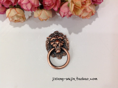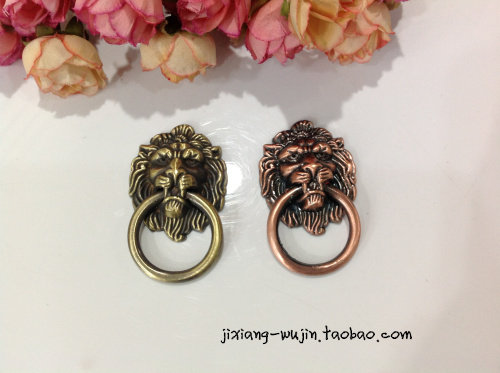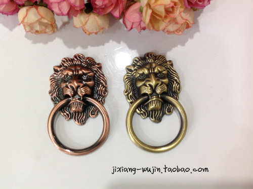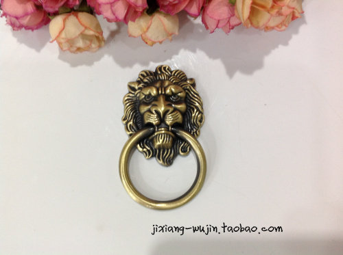 Antique hanging Laguna bronze European-style tea house Tibetan drawers cabinet door handle stone tea tray decorated with lion's head 002