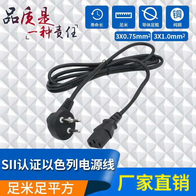 Pure copper Israel power cord 3 Core 0 75 1 square 1 8 m Israel Plug line Three-cylindrical three-hole line