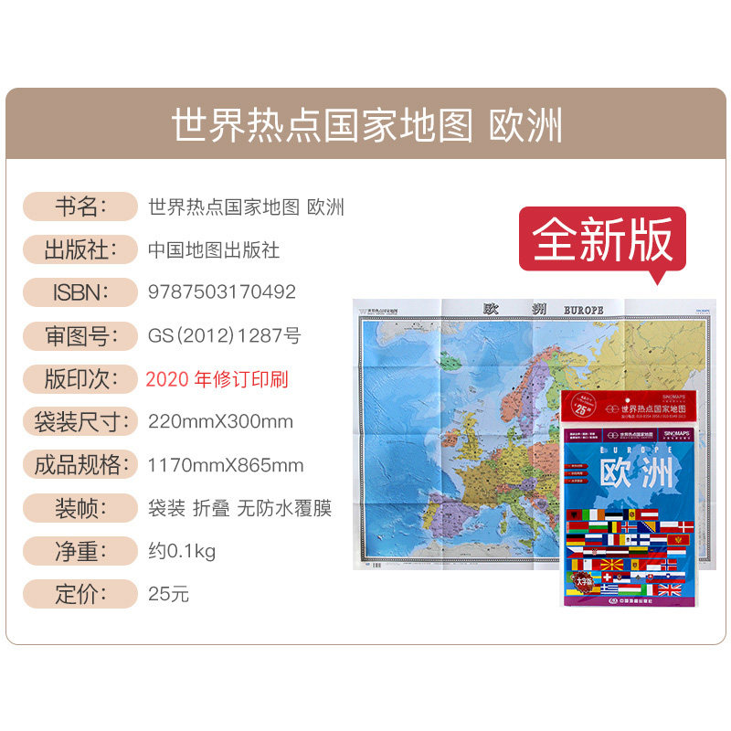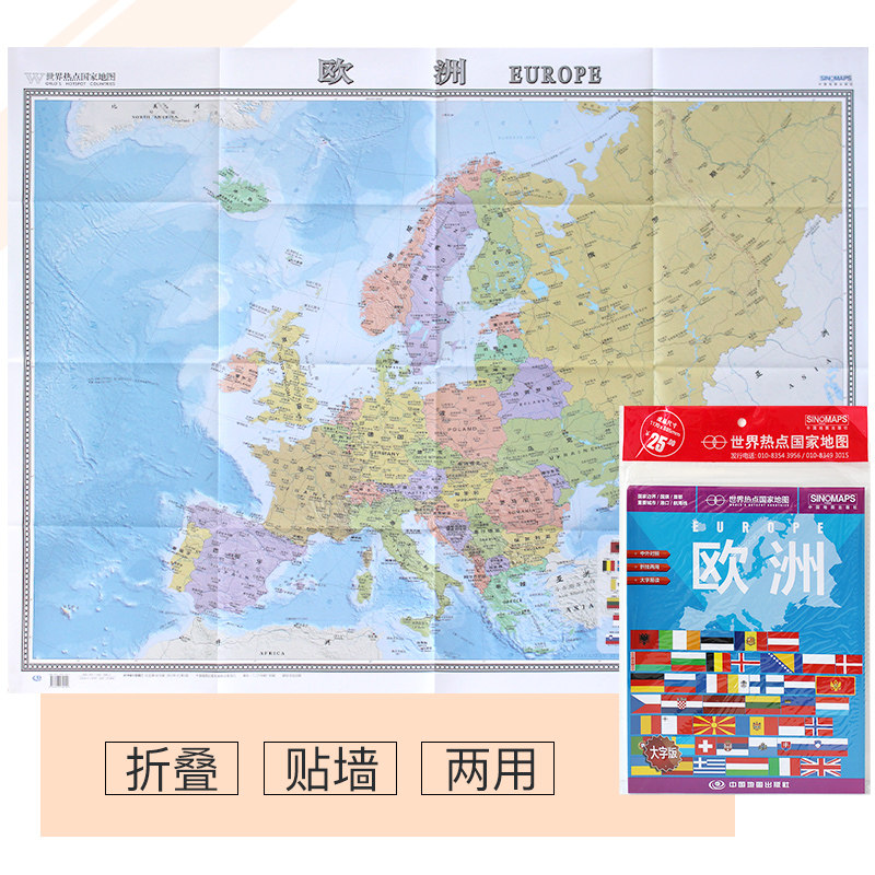 Map of Europe Map of World hot countries Map of Europe large print leaflet folding map Chinese and English 1 17m X0 86m Study abroad Tourist attractions University port Airport Navigation
