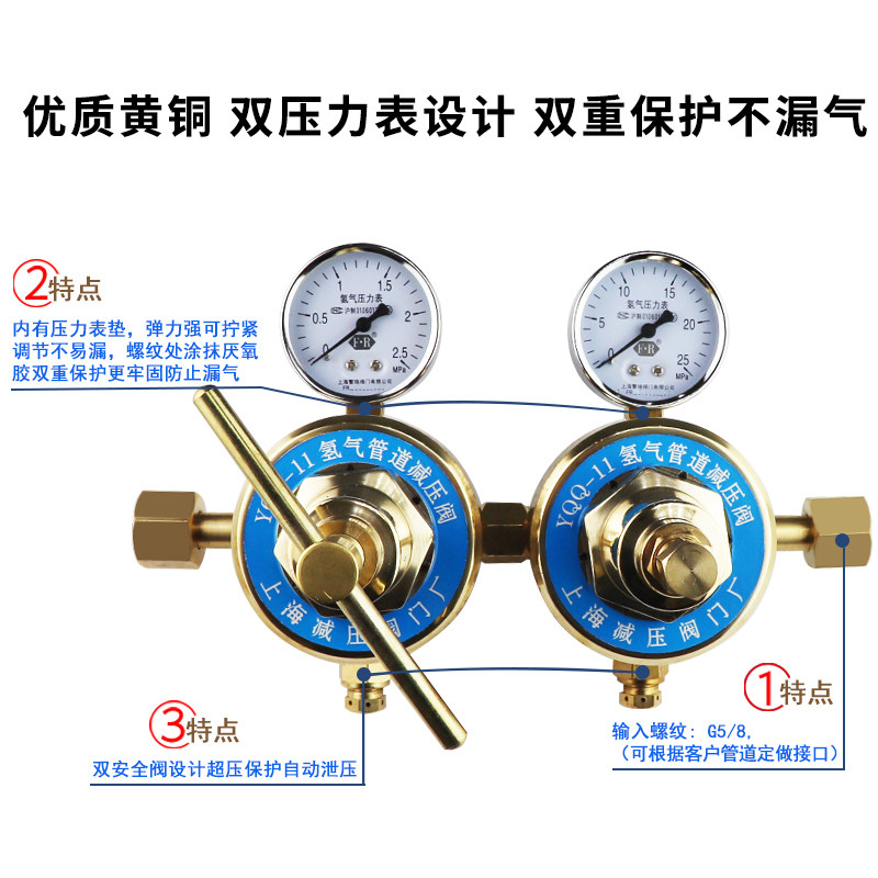 YQQ-11 hydrogen pressure reducing valve YQQ11 all-copper pipeline hydrogen pressure reducing valve Shanghai Pressure Reducing Valve Factory