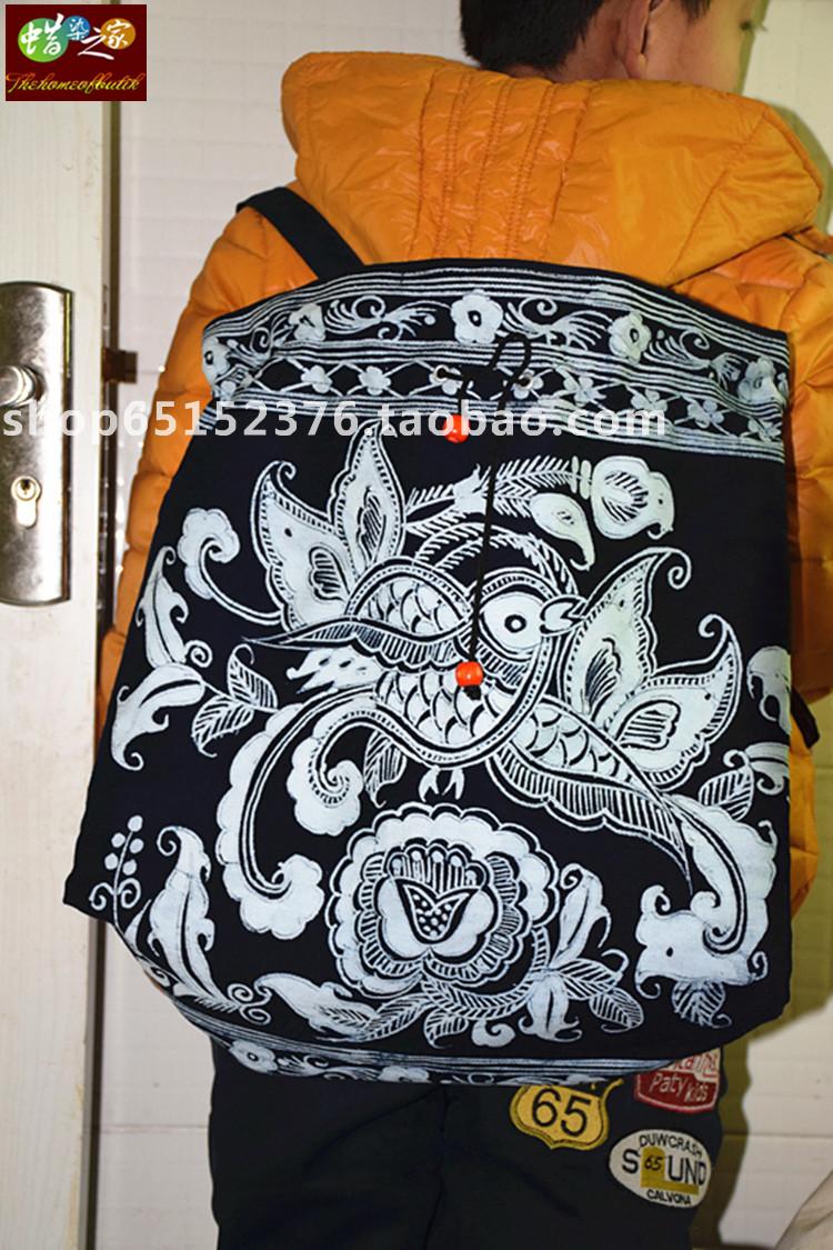 Batik bag Guizhou Miao ethnic characteristics traditional Batik bag shoulder bag leisure bag 42*36CM