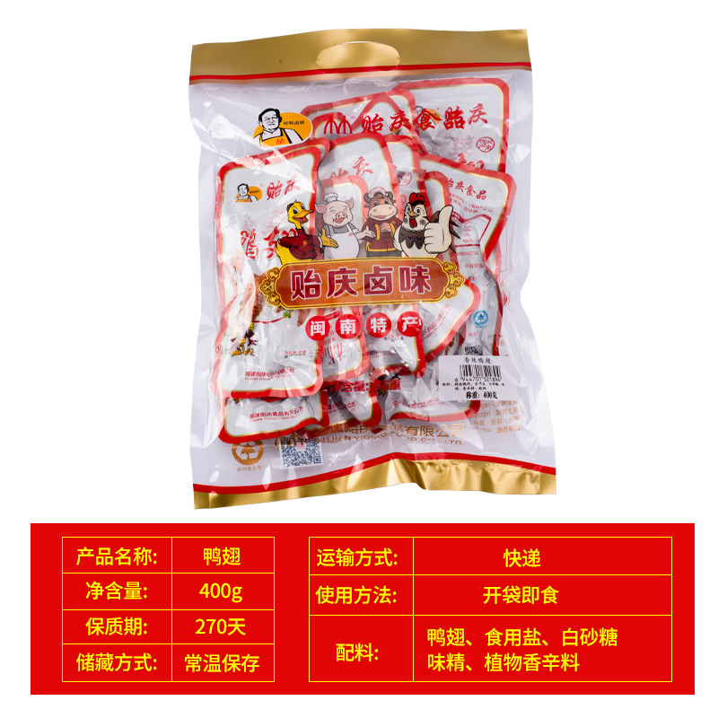 Yiqing Food Fujian Quanzhou specialty snacks Hongze braised duck wings 400g single vacuum packed ready-to-eat snacks
